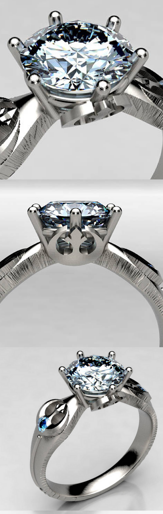 Our craftsmen have brought to life futuristic styled rings that embody all things Star Wars. My partner LOVES Star Wars thought of this ring for him as a wedding band. Called the Star Wars Rebel Alliance and Jedi Order Engagement Ring the design is a mashup of battleship hardware R2s signature blue and the Jedi Orders insignia in silver with sapphires and a princess-cut.